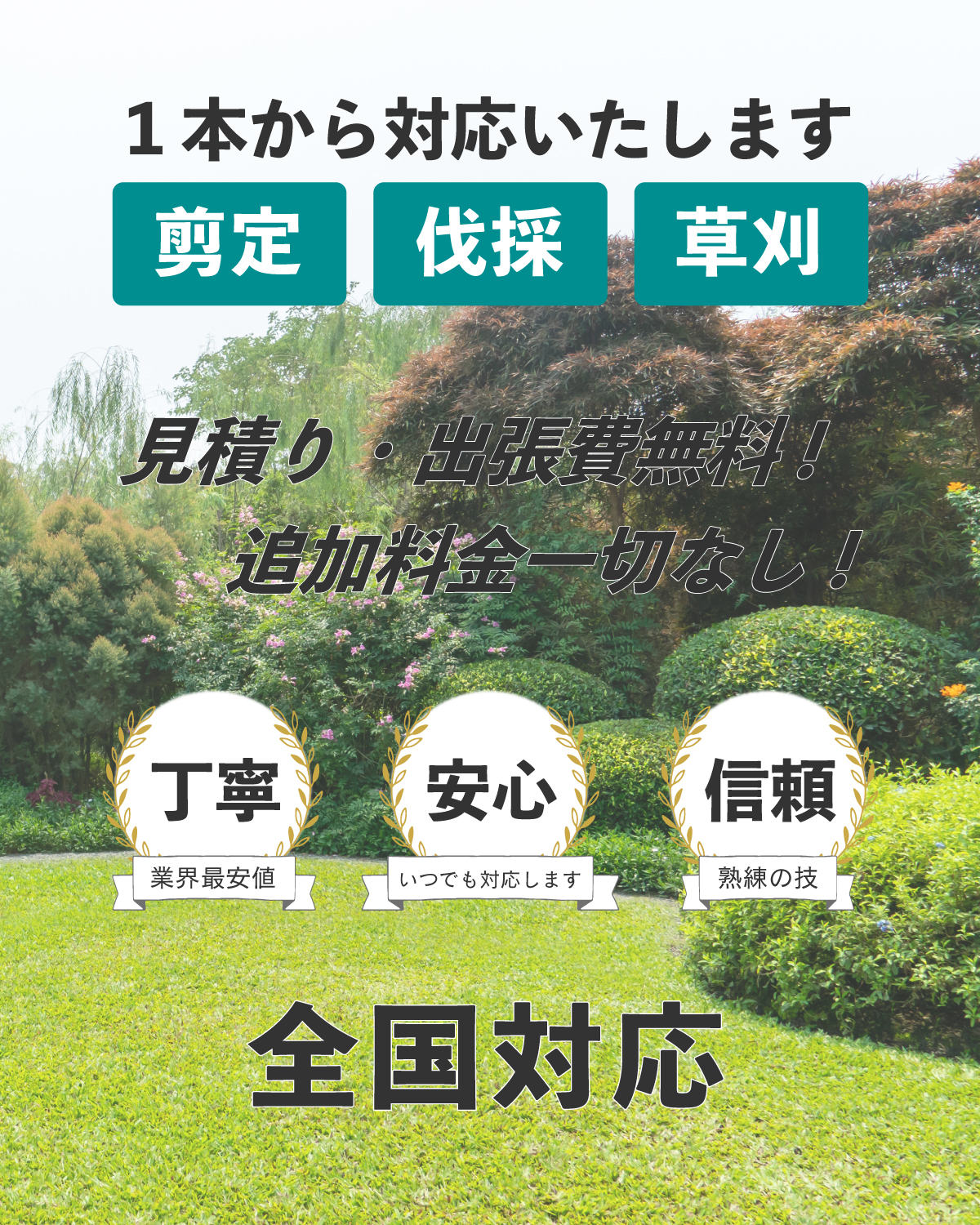 今まで身内に頼んでいたが難しくなったため、業者に依頼するというケースが増えています。どんな敷地でも、グリーニングにお任せください。